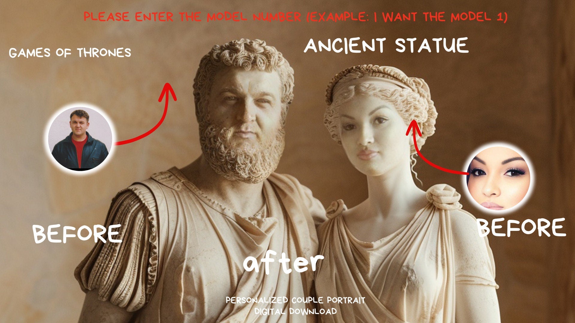 Custom Ancient Sculpture Style Couple Portrait from Photo, Custom Portrait, People Portrait, Personalized Portrait , Gıft