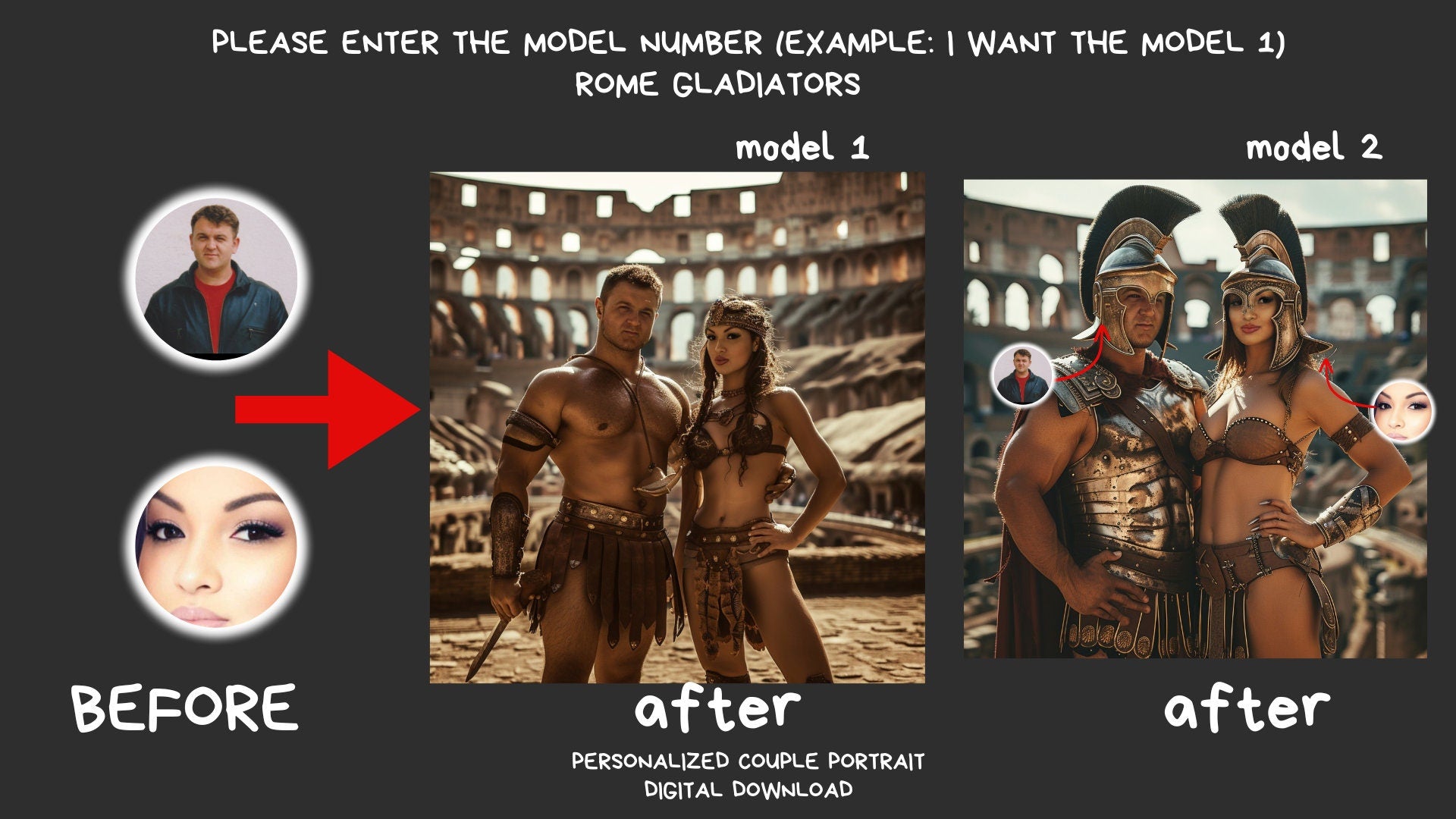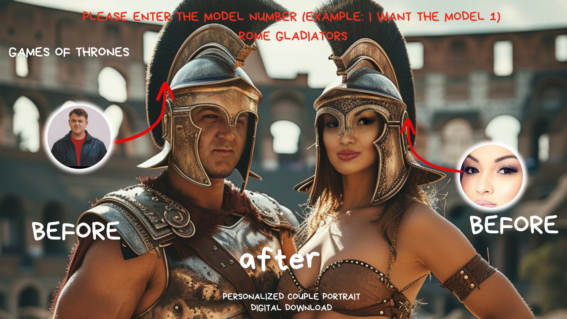 Custom Rome Gladiators Style Couple Portrait from Photo, Custom Portrait, People Portrait, Personalized Portrait , Gıft