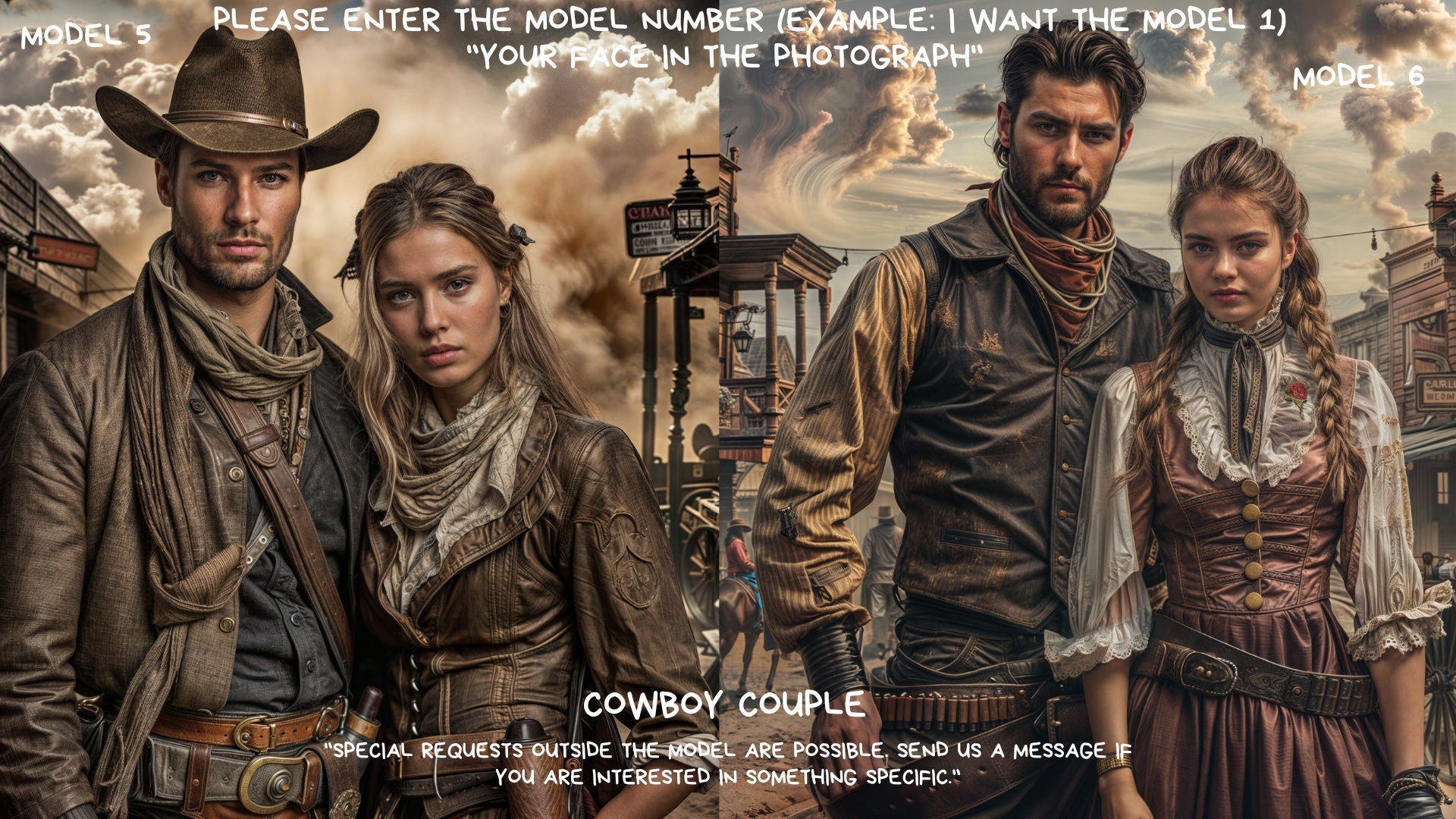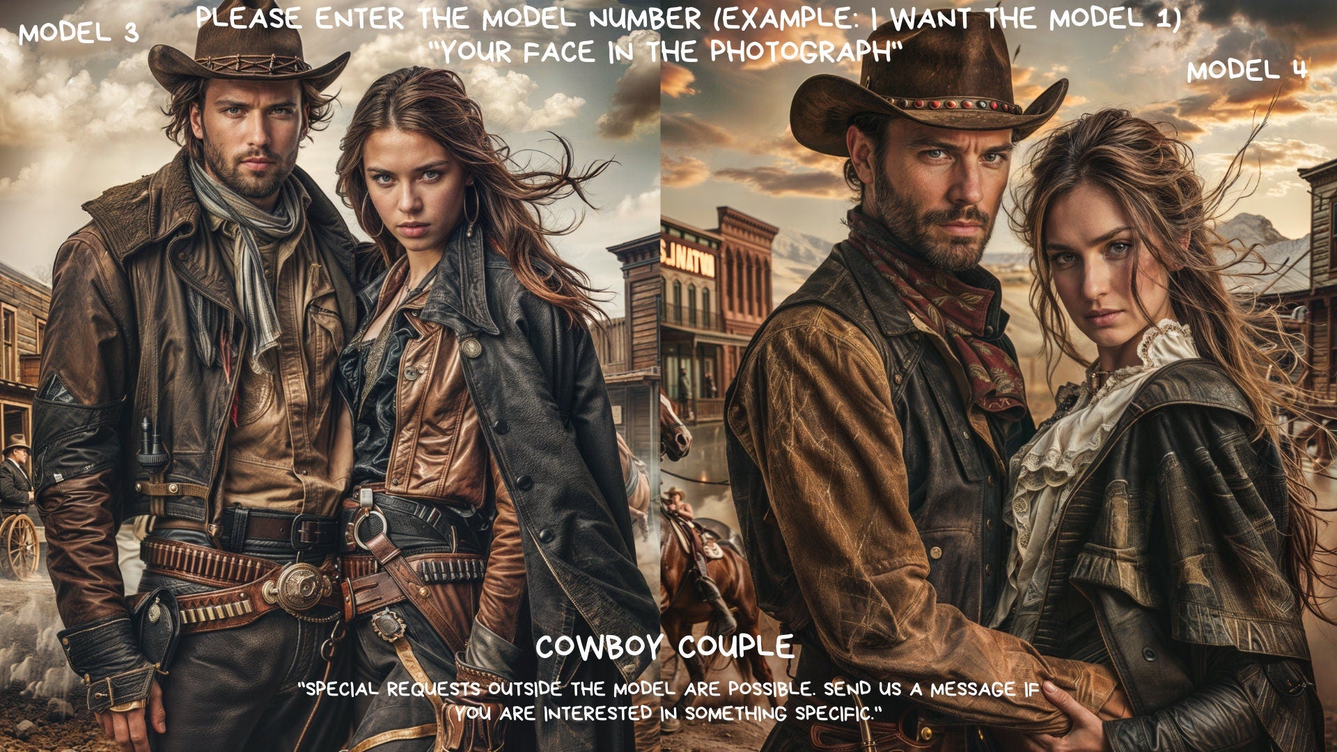 Custom Portrait Cowboy Couple Style from Picture, Custom Cowboy Couple Portrait, Birthday gift,wall art, personalized prints, Personalized portraits (individual, group) - The perfect gift for you, your family, your friends, loved ones.